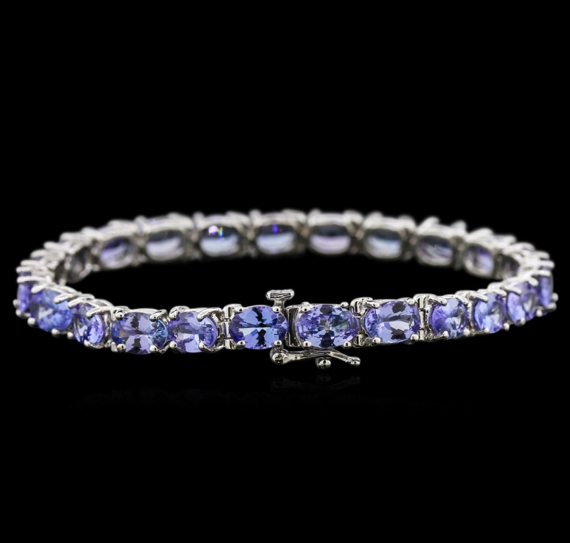 One stamped & tested 14KT white gold lady's combination cast & assembled bracelet with a safety clasp with a bright polish finish. Condition is new. 7" in length. Identified with markings of "14K". Containing: Twenty-three prong set oval brilliant cut natural tanzanites, measuring 7.10 x 5.10 x 3.23mm, approximate total weight of 16.97ct., clarity is eye clean, type I, medium, very slightly grayish, violetish blue color, (GIA vB 5/3), cut is good. Colored gemstones are presumed to have been subjected to commonly used enhancement processes. Graded in setting. Total Weight of Colored Stones: 16.97ct. Total Weight of Bracelet: 16.80 gm. GAS Appraised at $9,945.00.