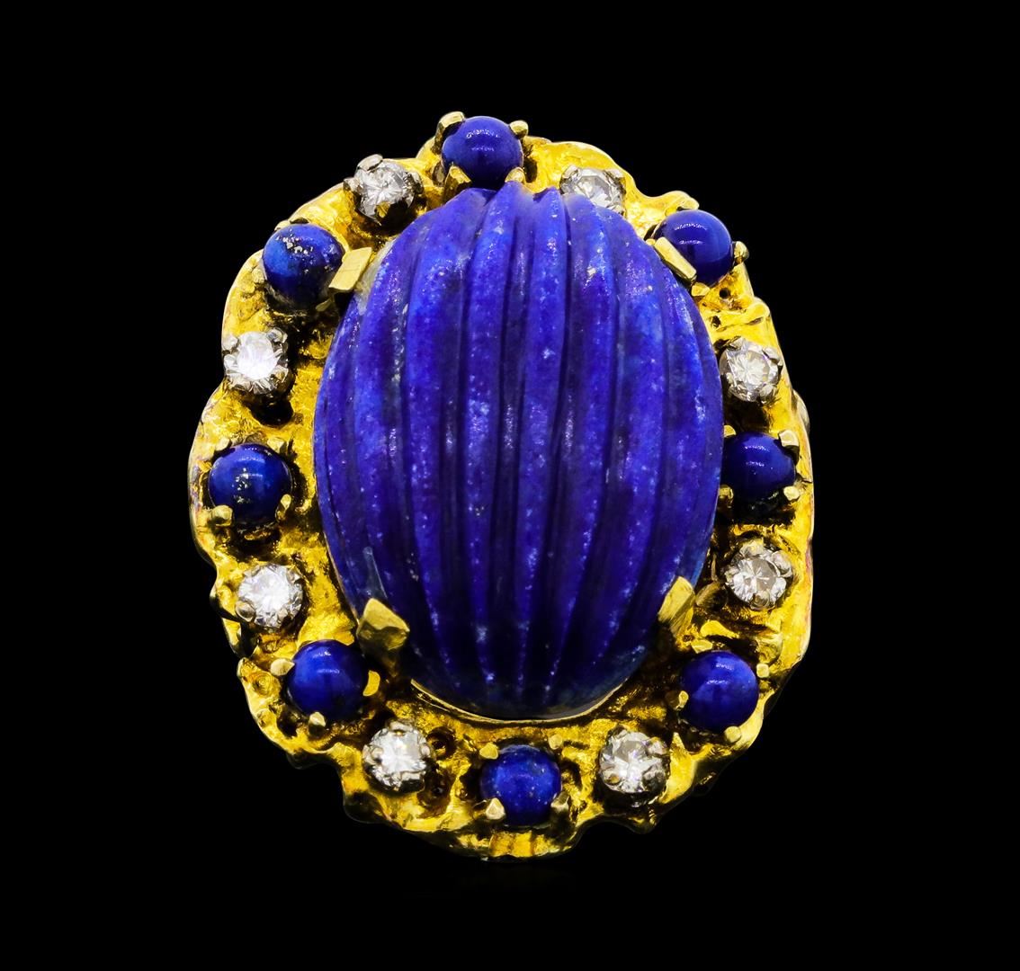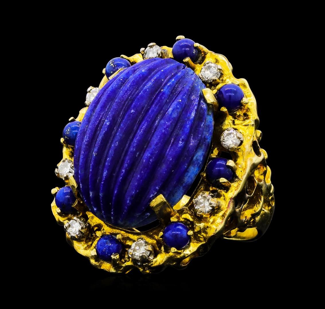 One lady's ring with a nugget halo motif featuring: 14KT yellow gold weighing 17.7 grams containing lapis lazuli weighing 17.00ctw and diamonds weighing 0.40ctw.
