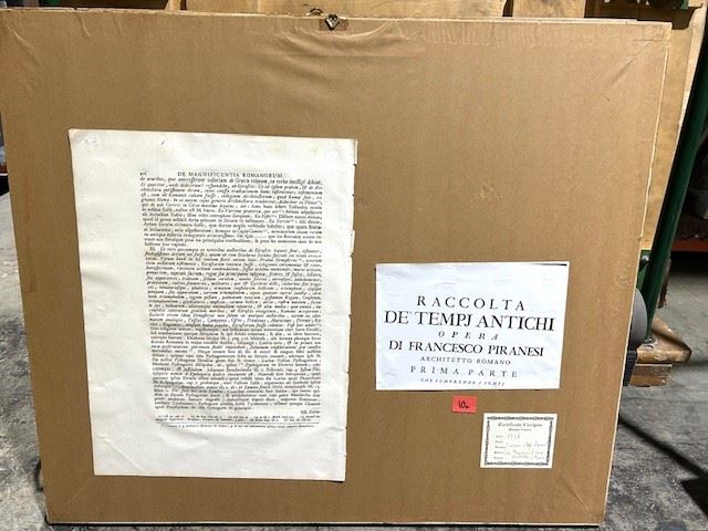 Framed 18thCentury Engraving 20x25" by famed Architect & Engraver Giovanni Piranesi, depicting a collection of excavated ancient Roman artifacts. Catalogue Raisonne by M.Henri Focillon. Old frame 32x37"