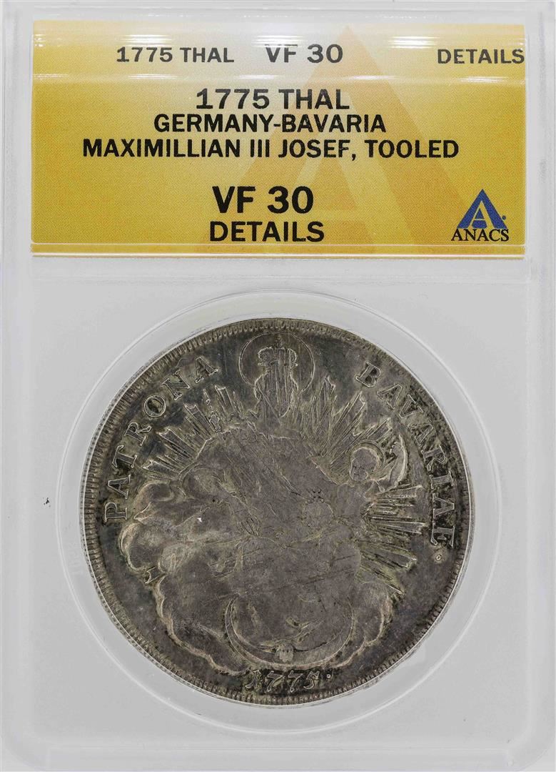 One 1775 Germany-Bavaria Maximillian III Coin ANACS VF30 Details. ANACS Appraised.