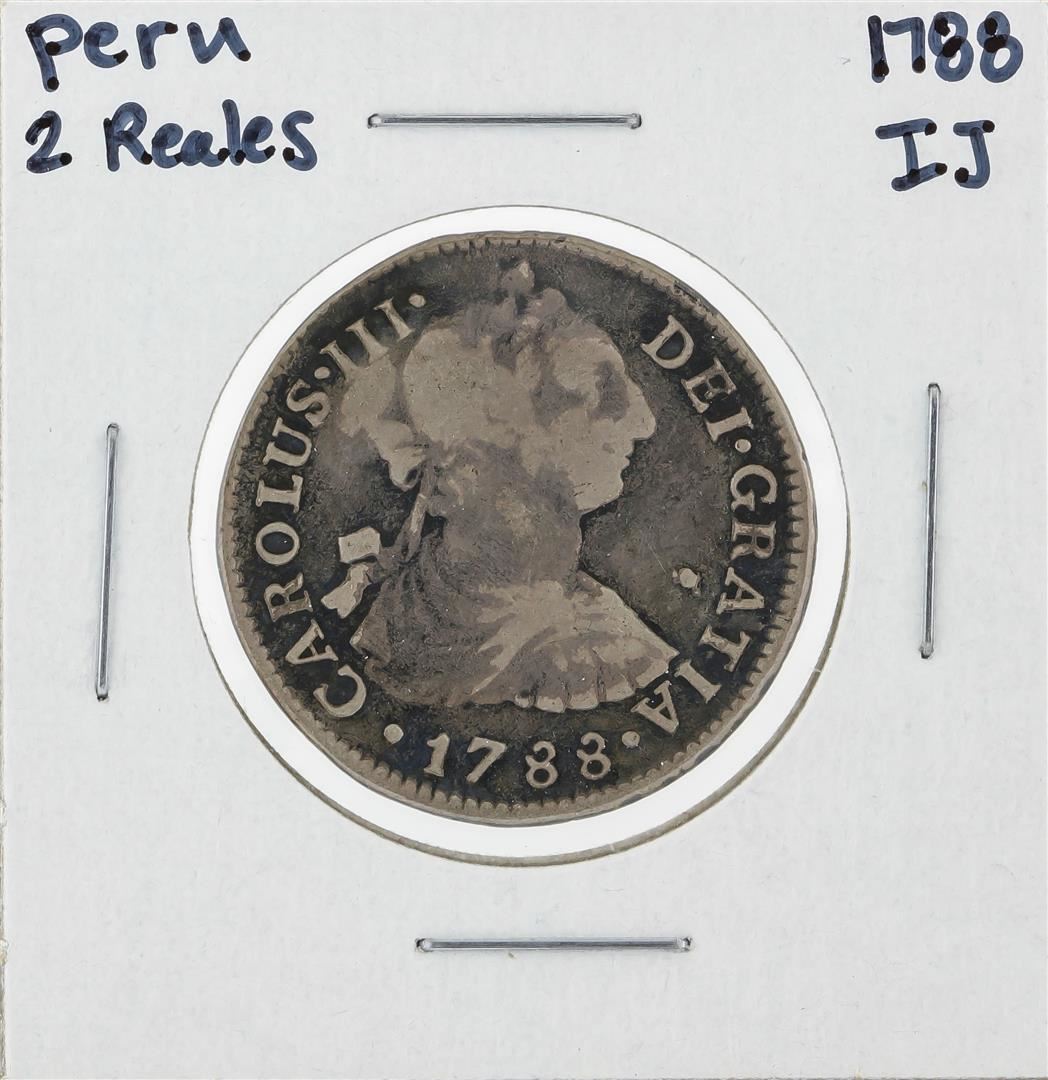 One 1788 IJ Peru 2 Reales Silver Coin.