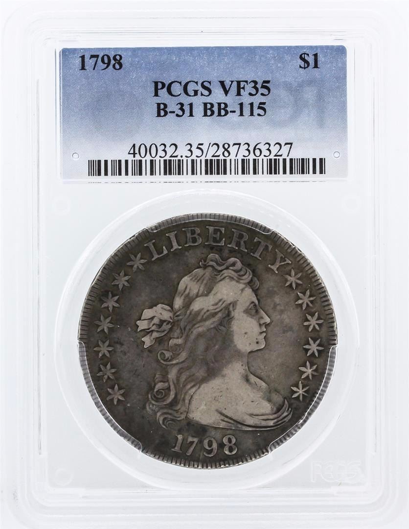One 1798 PCGS Graded VF35 B-31 BB-115 Draped Bust Large Eagle Silver Dollar. PCGS Certified.