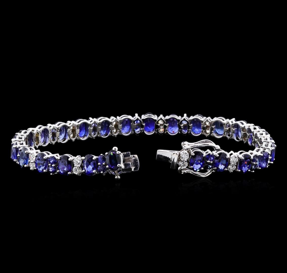 14K White Gold 18CT Emerald 1.80CT Diamond Bracelet. Description: Meal: 14k solid white gold. Face Measurements: 6 x 180mm. Size: 7.5. Finish: bright polish. Total Item Weight: 19.0 grams. Markings: stamped 14K. Main Stone: sapphire. Quantity: 26. Shape: oval. Color: blue. Carat Total Weight: 15.5. Measurements: 4 x 6 mm. Treatment: diffusion. Setting: prong. Hue: blue. Saturation: moderately strong. Tone: dark. Clarity: type 2. Cut: very good. Secondary Stone: diamond. Quantity: 26. Shape: round. Color: white. Carat Total Weight: 1.80. Measurements: 2.5mm. Treatment: none Setting: prong. Color Grade: H-I. Clarity: SI1-SI2. Cut: very good. Side Stone: sapphire. Quantity: 26. Shape: round. Color: blue. Carat Total Weight: 2.5. Measurements: 2.5mm. Treatment: diffusion. Setting: prong. Hue: blue. Saturation: moderately strong. Tone: medium dark. Clarity: type 2. Cut: very good. Excellent Workmanship. Gemstones graded in the mounting. BHGL Appraised at $18,750.00.