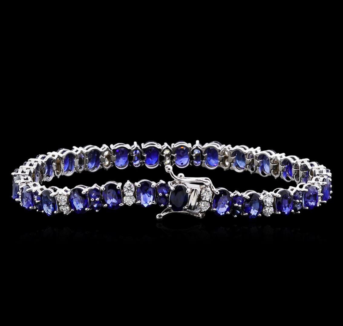 14K White Gold 18CT Emerald 1.80CT Diamond Bracelet. Description: Meal: 14k solid white gold. Face Measurements: 6 x 180mm. Size: 7.5. Finish: bright polish. Total Item Weight: 19.0 grams. Markings: stamped 14K. Main Stone: sapphire. Quantity: 26. Shape: oval. Color: blue. Carat Total Weight: 15.5. Measurements: 4 x 6 mm. Treatment: diffusion. Setting: prong. Hue: blue. Saturation: moderately strong. Tone: dark. Clarity: type 2. Cut: very good. Secondary Stone: diamond. Quantity: 26. Shape: round. Color: white. Carat Total Weight: 1.80. Measurements: 2.5mm. Treatment: none Setting: prong. Color Grade: H-I. Clarity: SI1-SI2. Cut: very good. Side Stone: sapphire. Quantity: 26. Shape: round. Color: blue. Carat Total Weight: 2.5. Measurements: 2.5mm. Treatment: diffusion. Setting: prong. Hue: blue. Saturation: moderately strong. Tone: medium dark. Clarity: type 2. Cut: very good. Excellent Workmanship. Gemstones graded in the mounting. BHGL Appraised at $18,750.00.