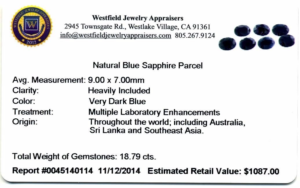 18.79cts Oval Cut Natural Blue Sapphire Parcel. Westfield Appraised at $1,087.00.