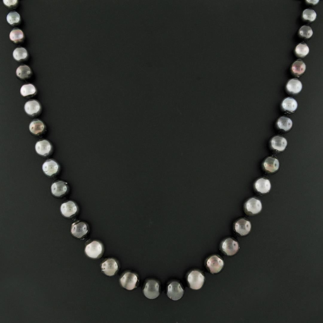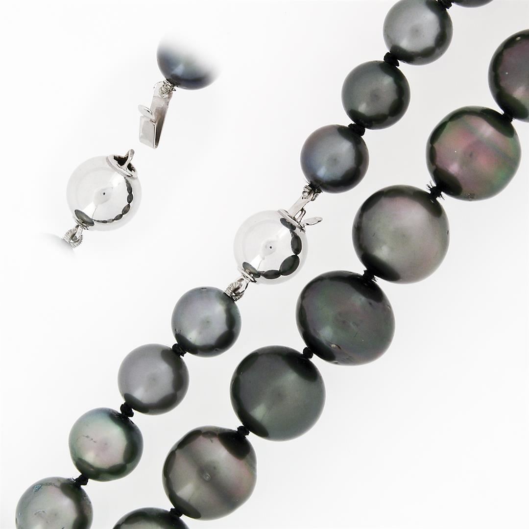 An estate strand necklace & solid 14k white gold clasp, with 42 off round to near round shape cultured tahitain pearls (8.25 to 11.5 mm). 18 inch bead link chain, 58.86 grams total weight.