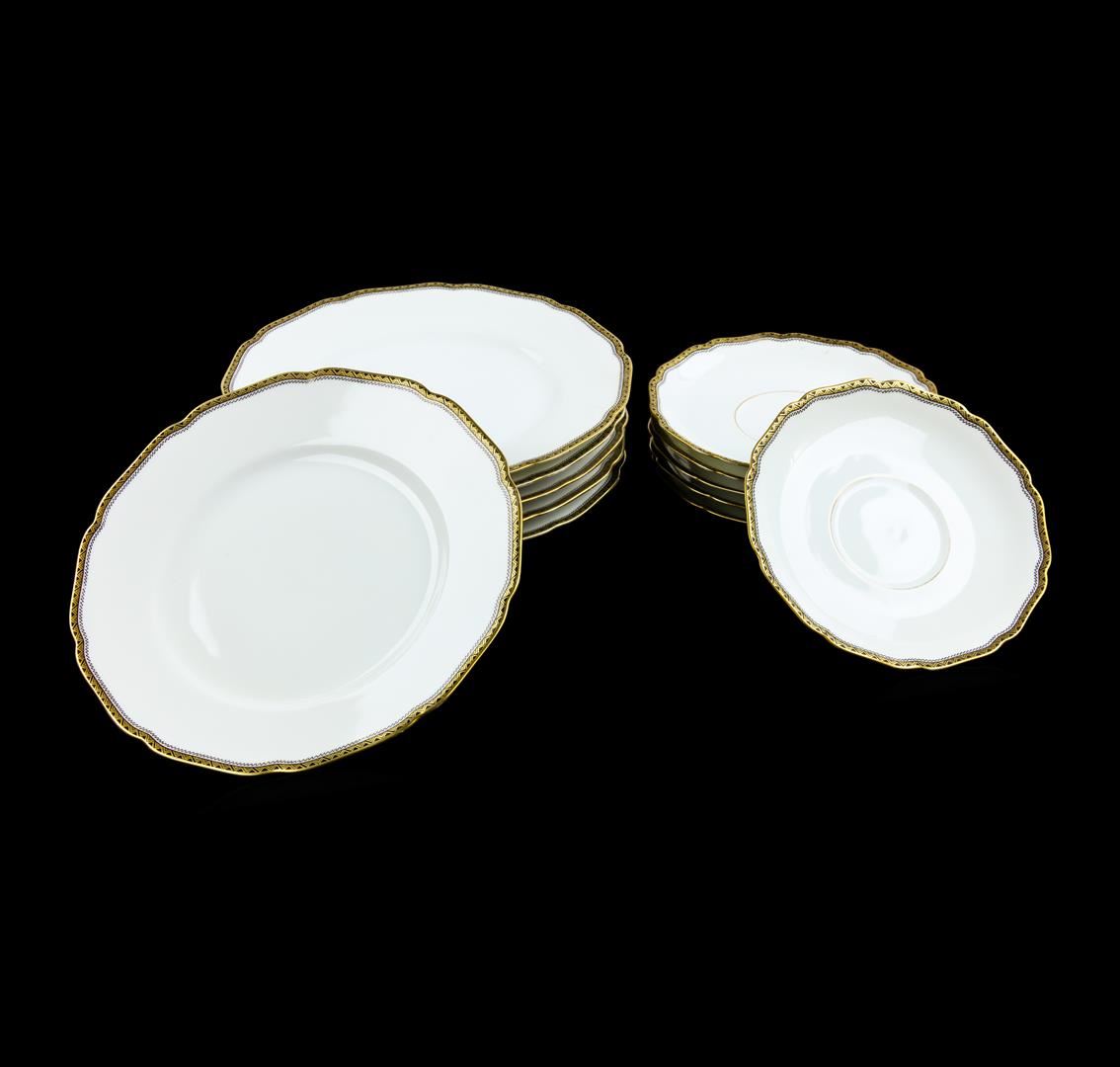 18 piece tea/luncheon Set raised gold encrusted Hutschenreuther Kohenberg Bvavaria. This 18 piece set includes 6 tea cups, 6 saucers, and 6 salad plates measuring 7.75". No chips, cracks, or damage. There is just a bit of rubbing from gentle use.