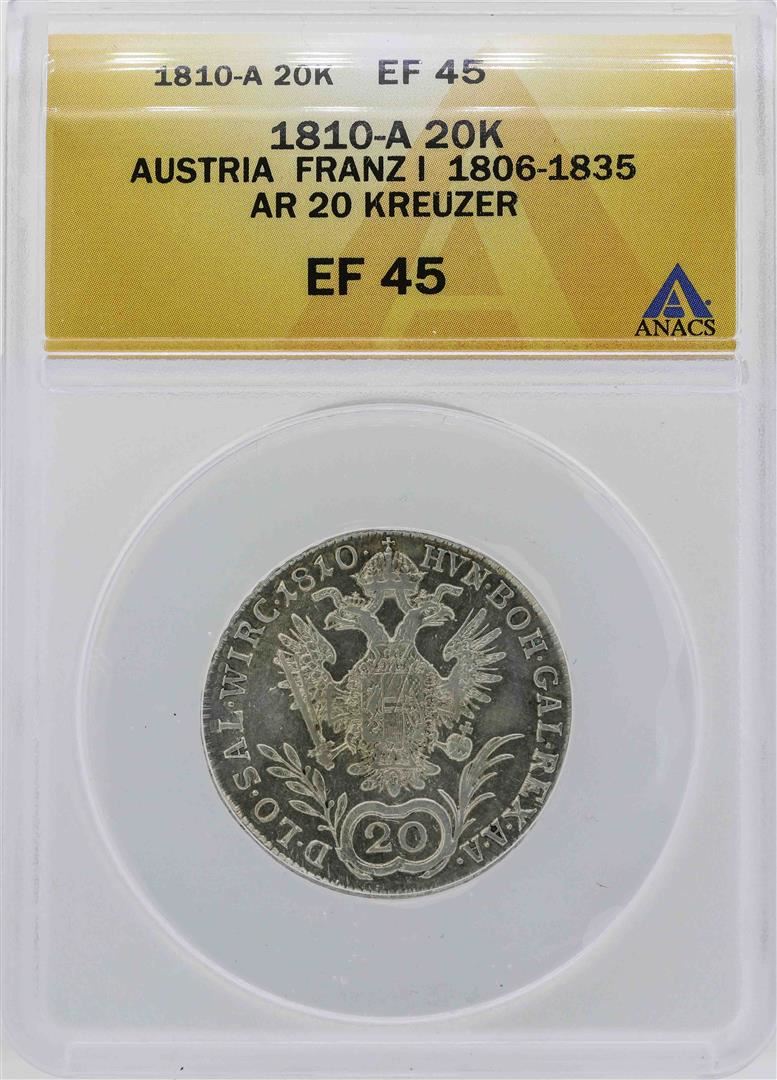 One 1810-A Austria 20 Kreuzer Coin ANACS XF45. ANACS Appraised.