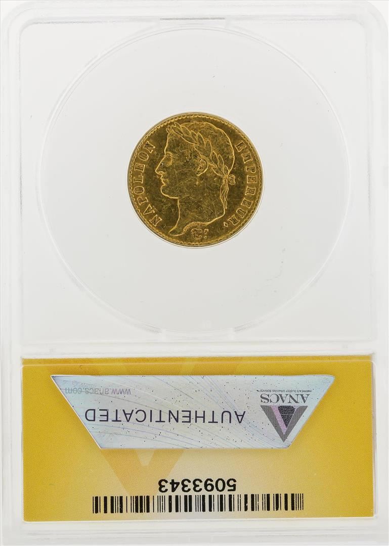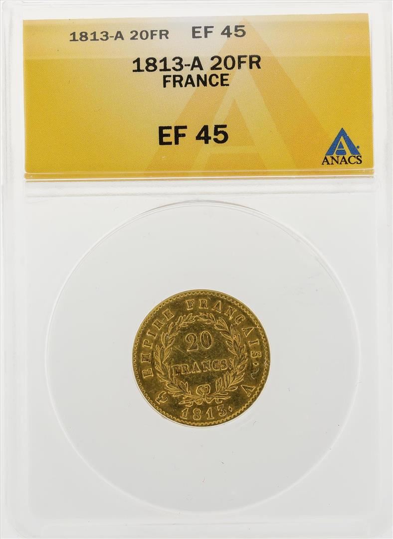One 1813-A 20 Francs Gold Coin ANACS EF45. ANACS Appraised.