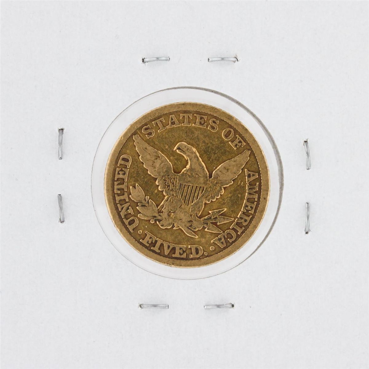 One 1846 $5 F Liberty Head Half Eagle Coin.