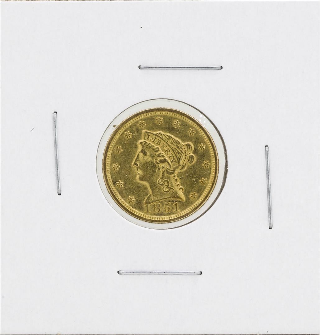One 1851 $2 1/2 Liberty Head Quarter Eagle Gold Coin.