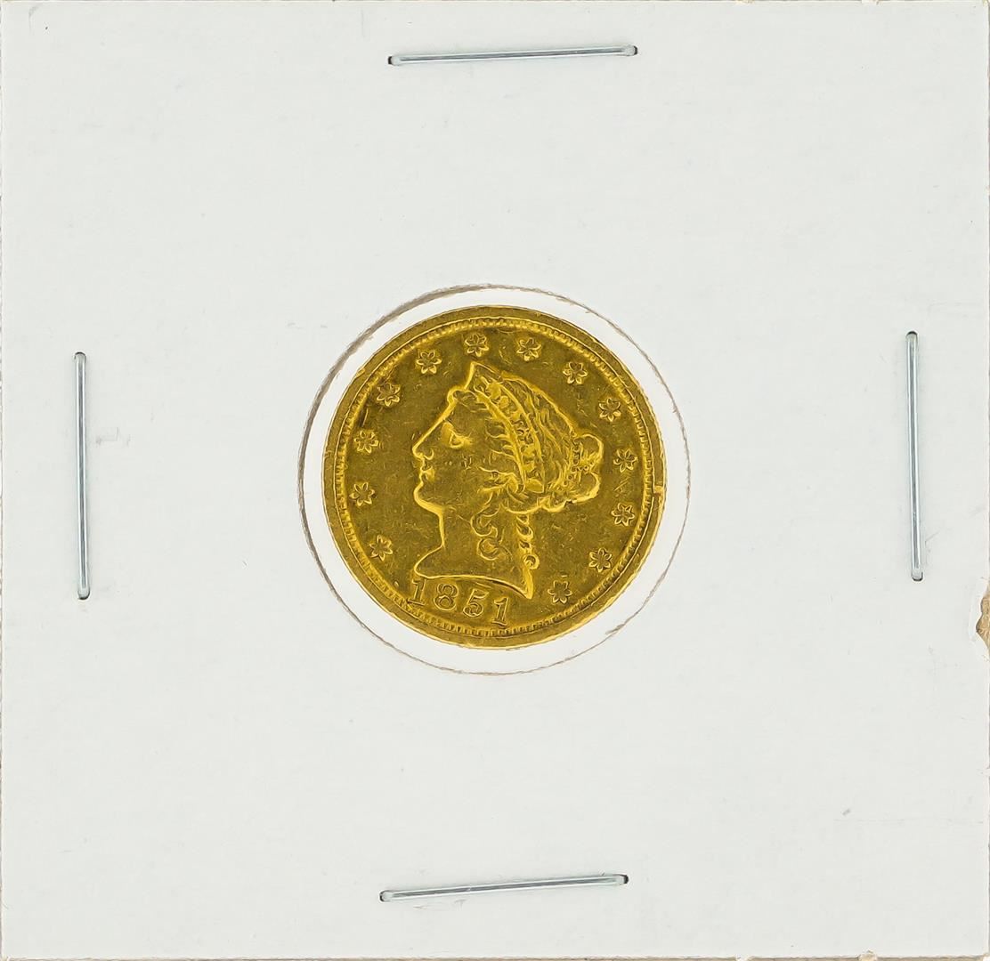 One 1851 $2.50 Liberty Head Quarter Eagle Gold Coin.