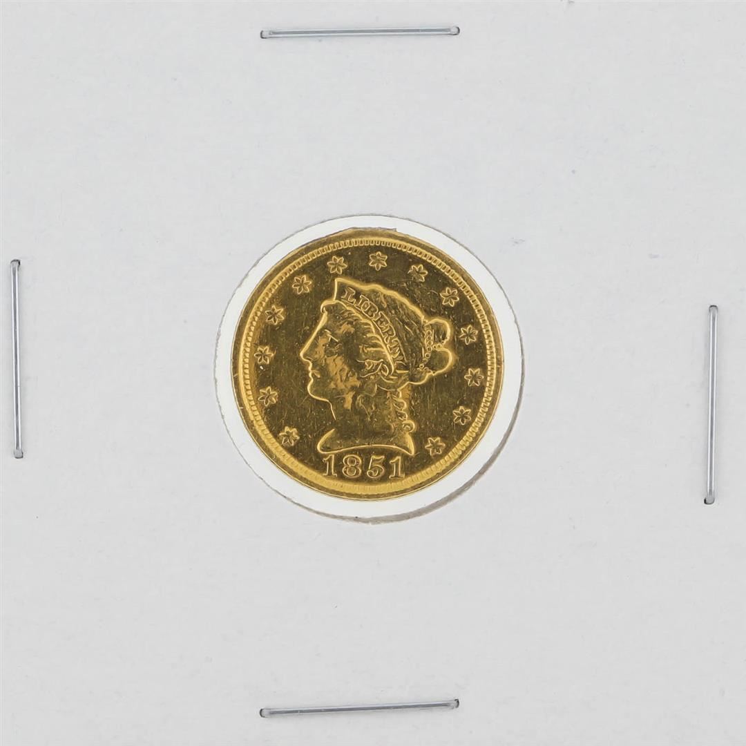 One 1851 $2.50 Liberty Head Quarter Eagle Gold Coin.