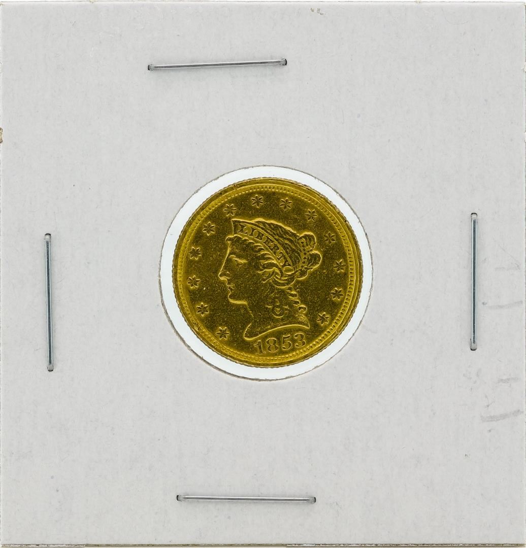 One 1853 $2.5 Liberty Head Quarter Eagle Gold Coin.