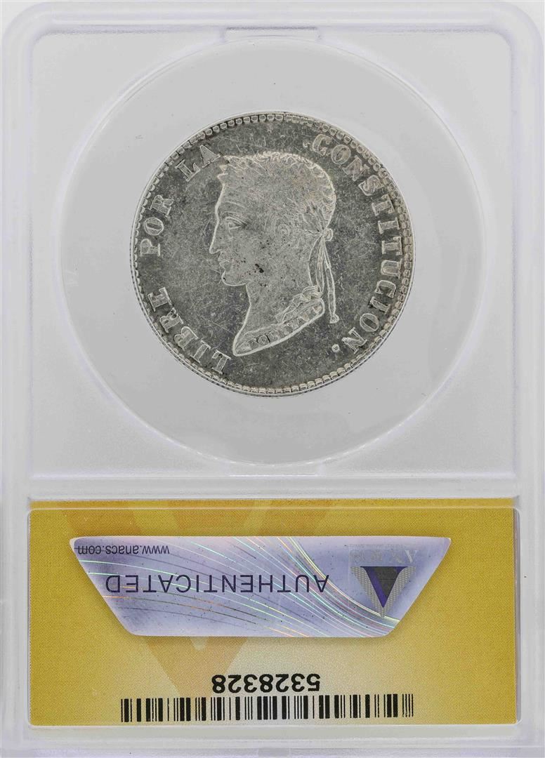 One 1857-P FJ Bolivia 4 Soles Coin ANACS AU53. ANACS Appraised.