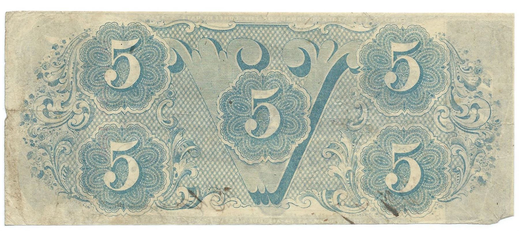One 1863 $5 The Confederate States of America Note T-60 CC