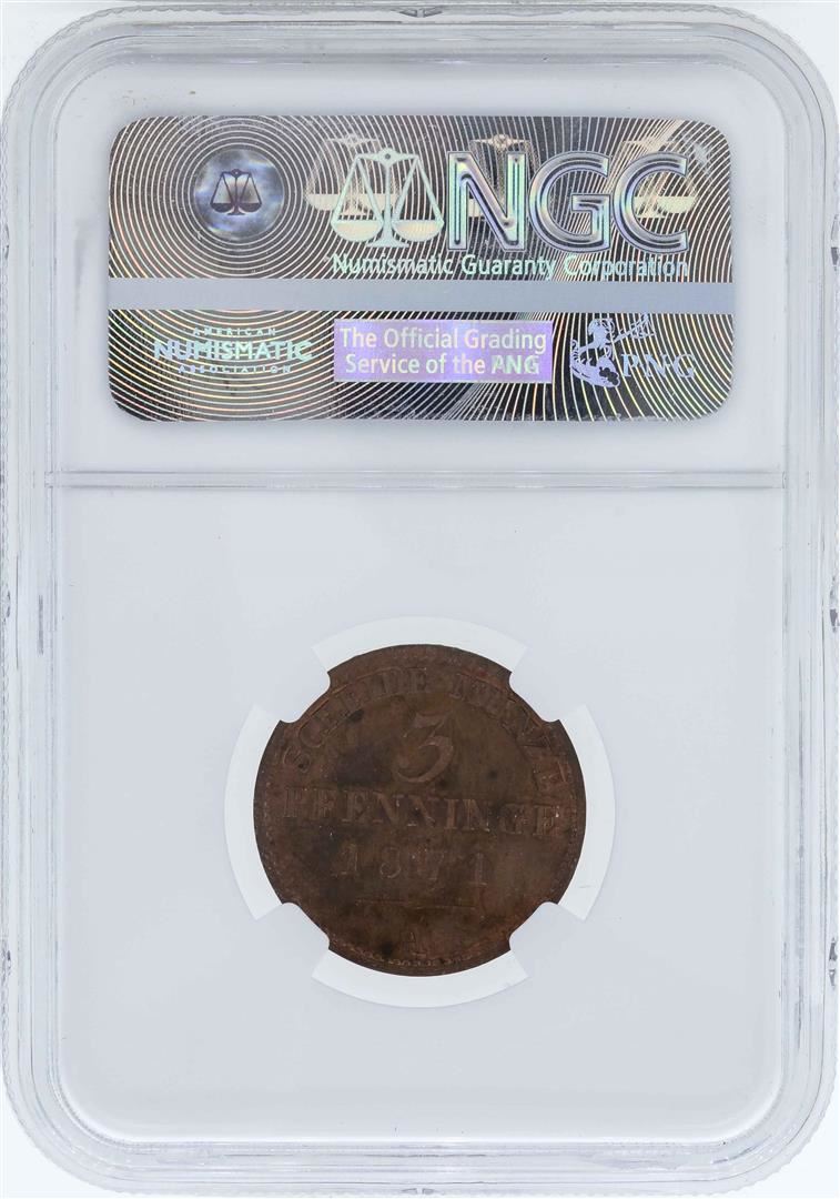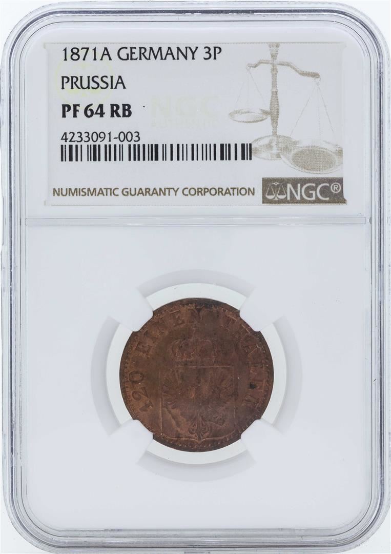 One 1871A Germany 3 Pfenninge Prussia Proof Coin NGC PF64RB.