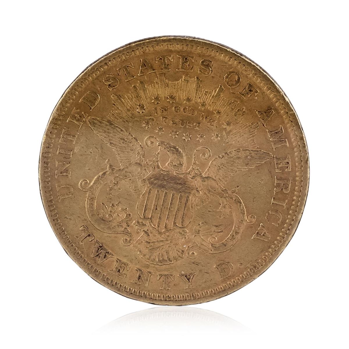 One 1873 Open 3 AU $20 Double Eagle Liberty Head Gold Coin.