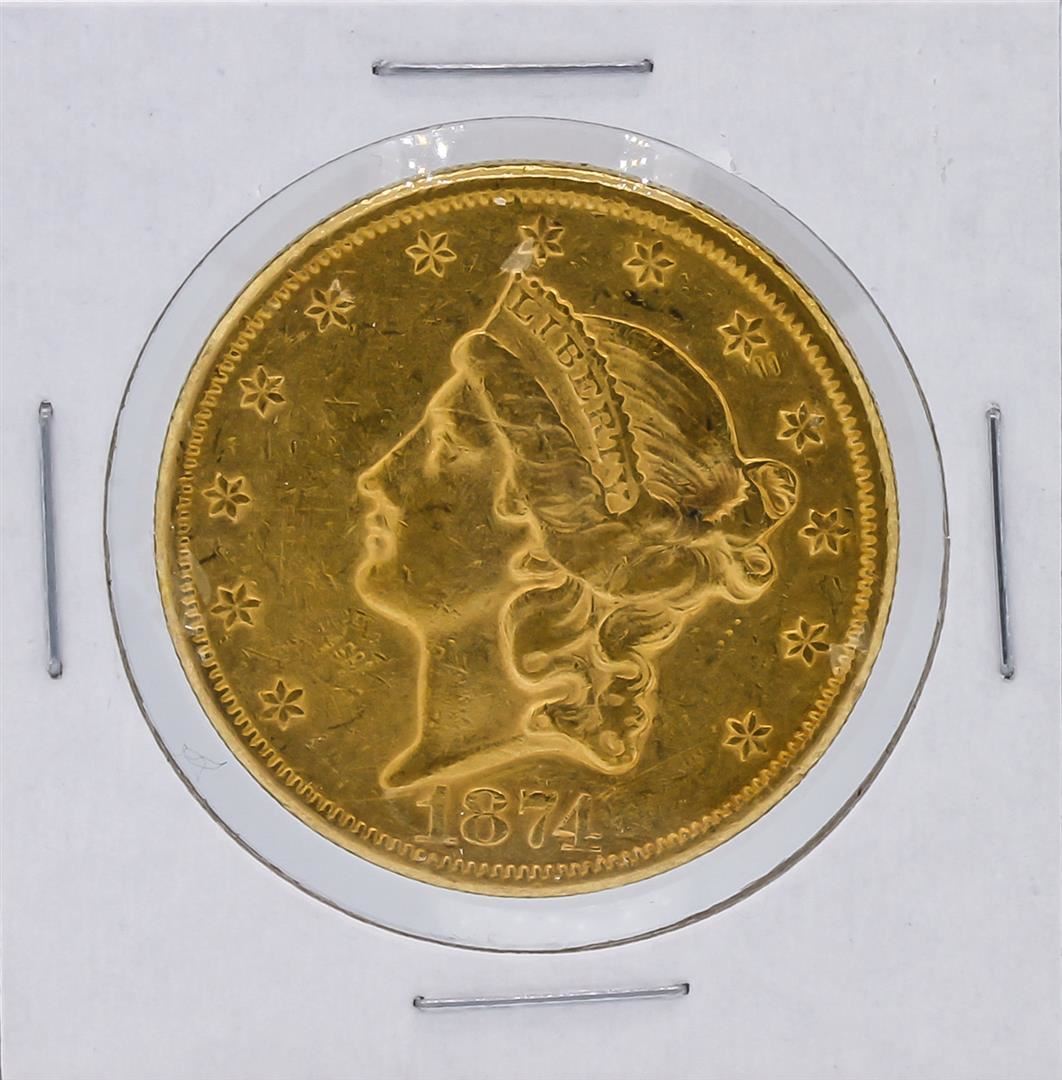 One 1874-CC $20 AU Liberty Head Double Eagle Gold Coin.