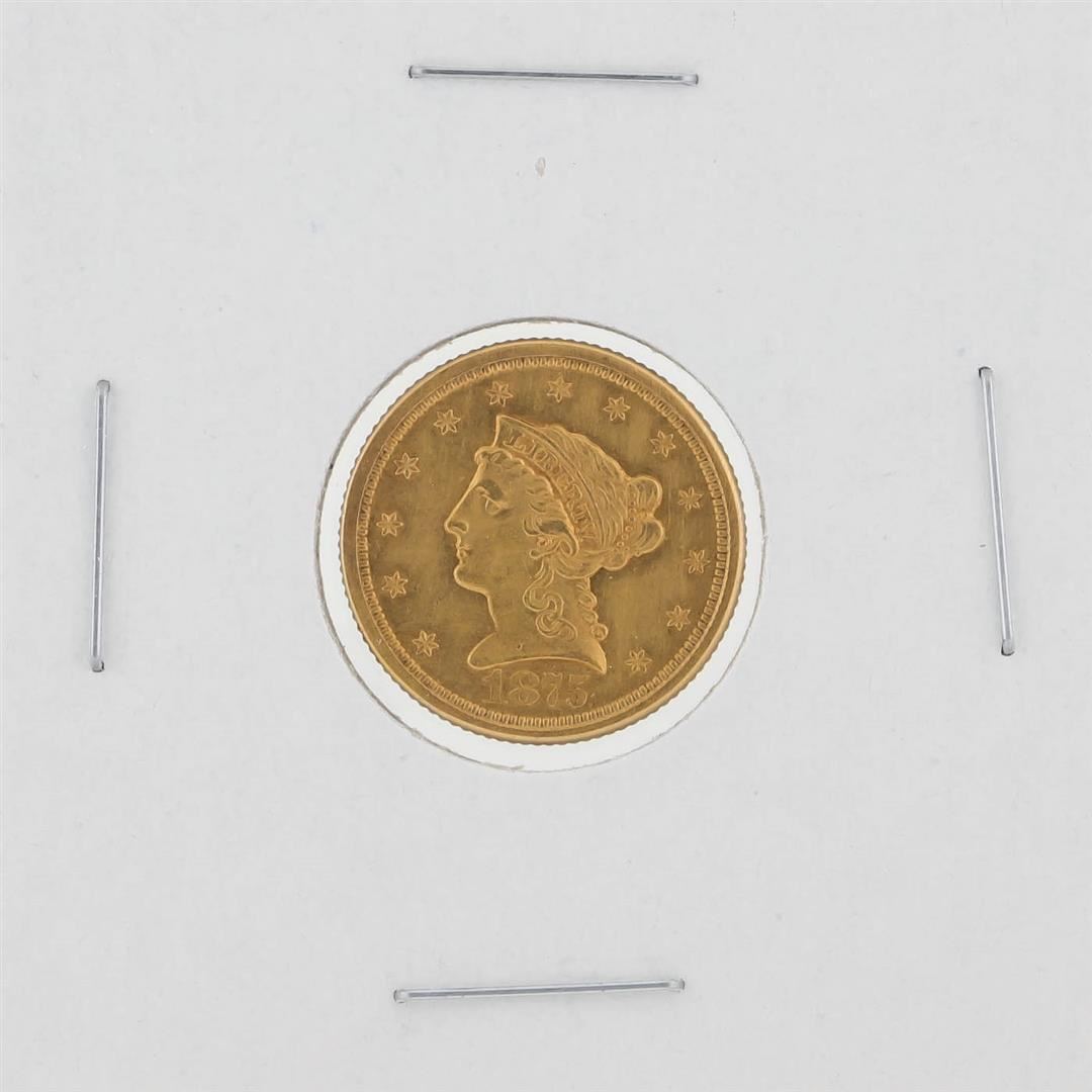 One 1875-S $2.50 Liberty Head Quarter Eagle Gold Coin.