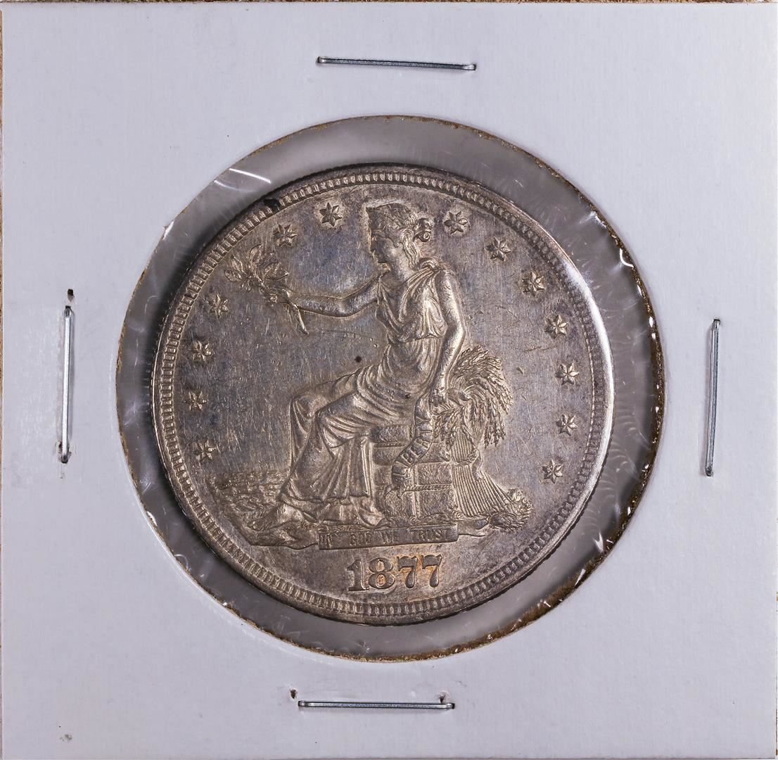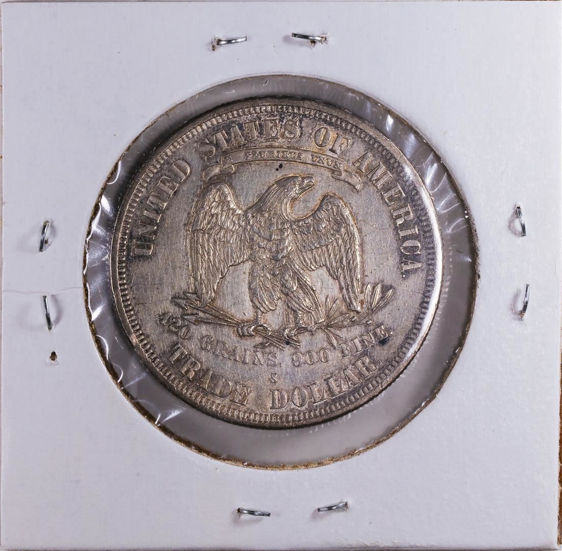 One 1877-S $1 Trade Silver Dollar Coin AU.