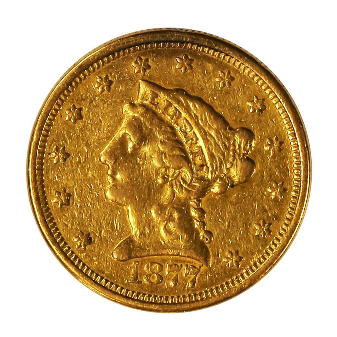 One 1877-S $2.5 Liberty Head Quarter Eagle Gold Coin C.