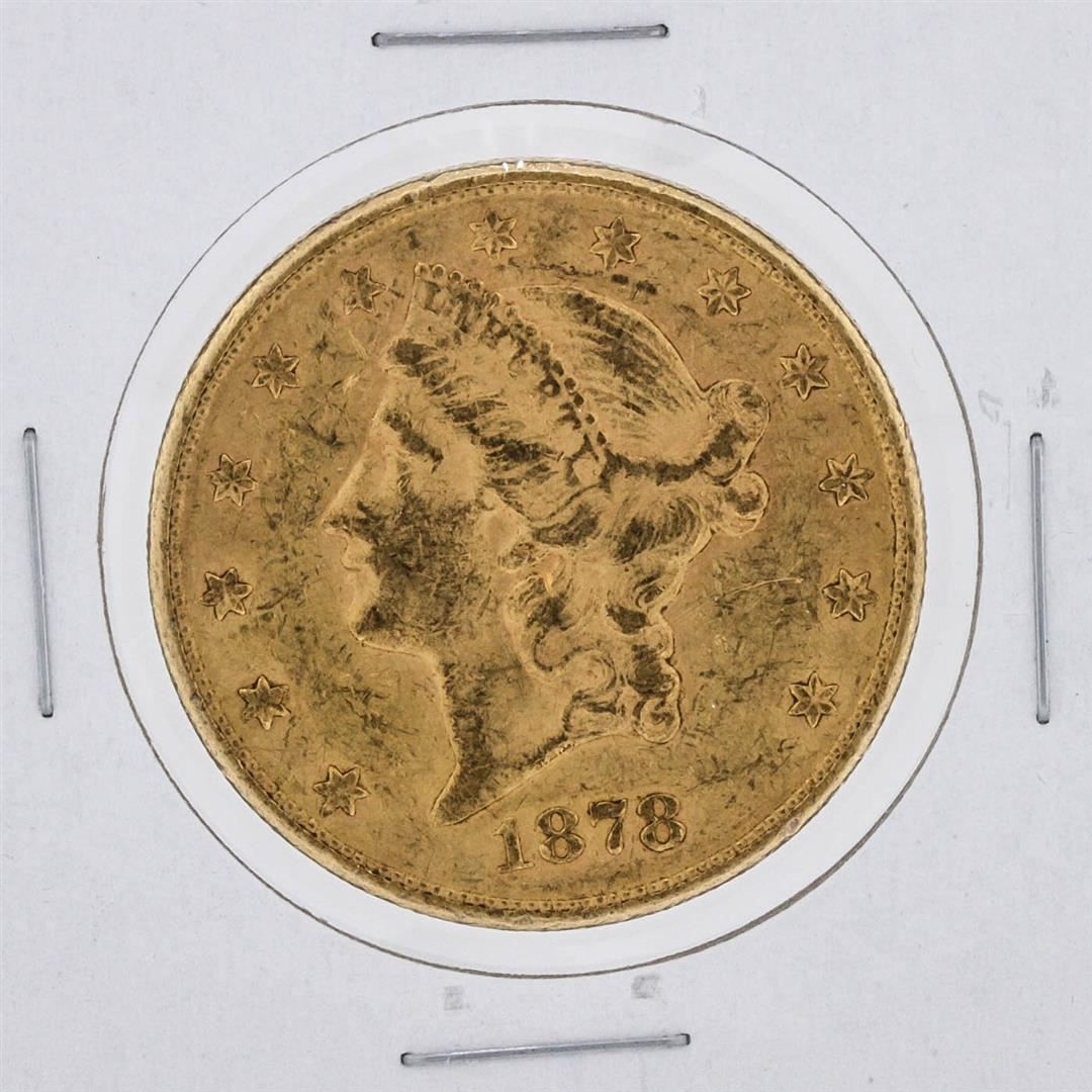 One 1878 $20 AU Liberty Head Double Eagle Coin.