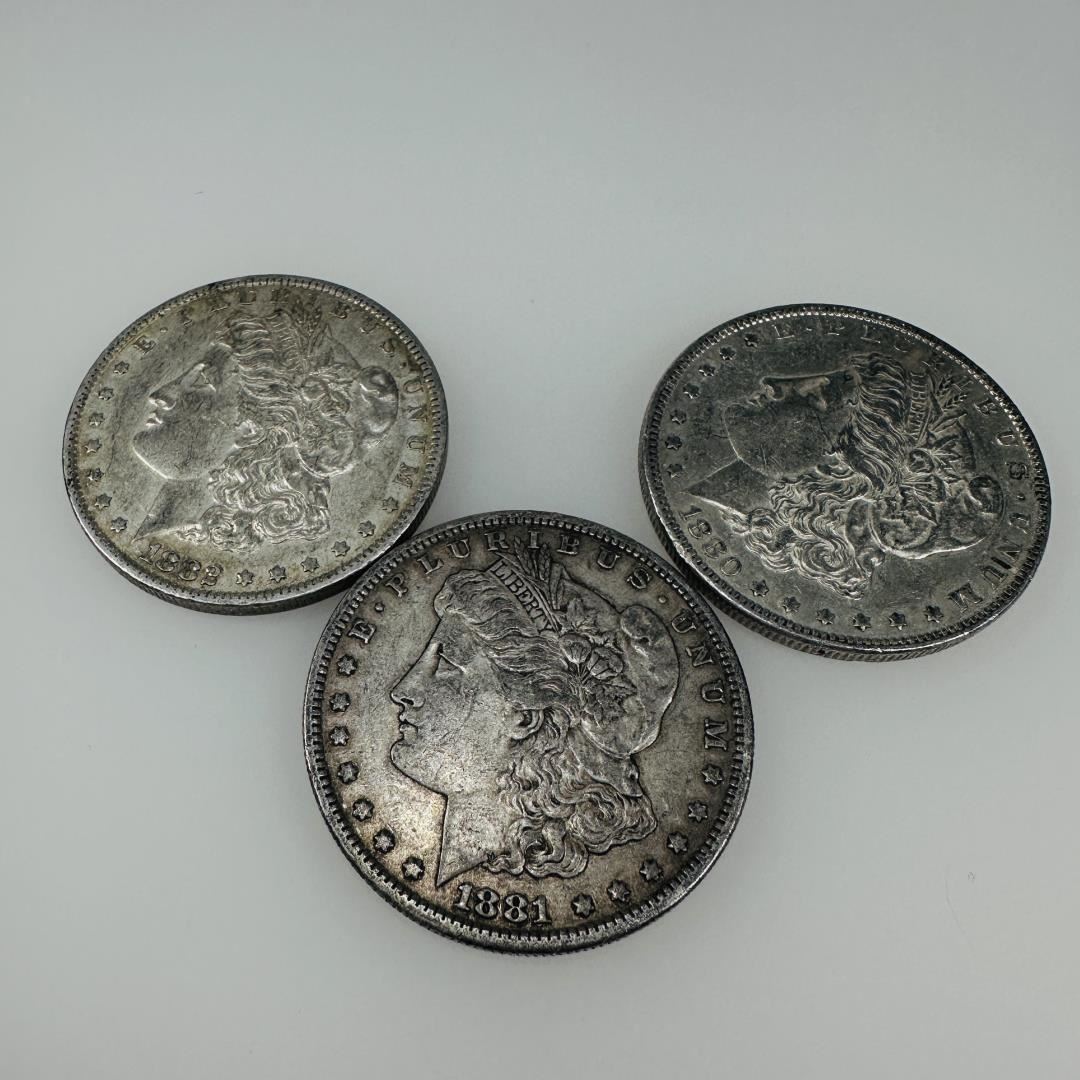 This consecutive set of Morgan Silver Dollars from 1880 to 1882 is a prized addition for collectors. Each coin in this VG+ graded set showcases the iconic design of Liberty and represents a piece of American history. A perfect set for anyone looking to expand their collection with consecutive years of these classic silver dollars.
