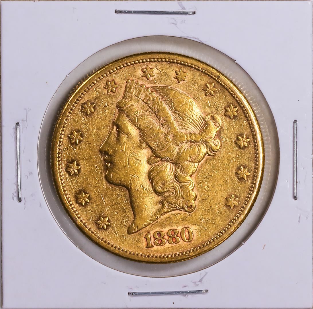 One 1880 $20 Liberty Head Double Eagle Gold Coin VF.