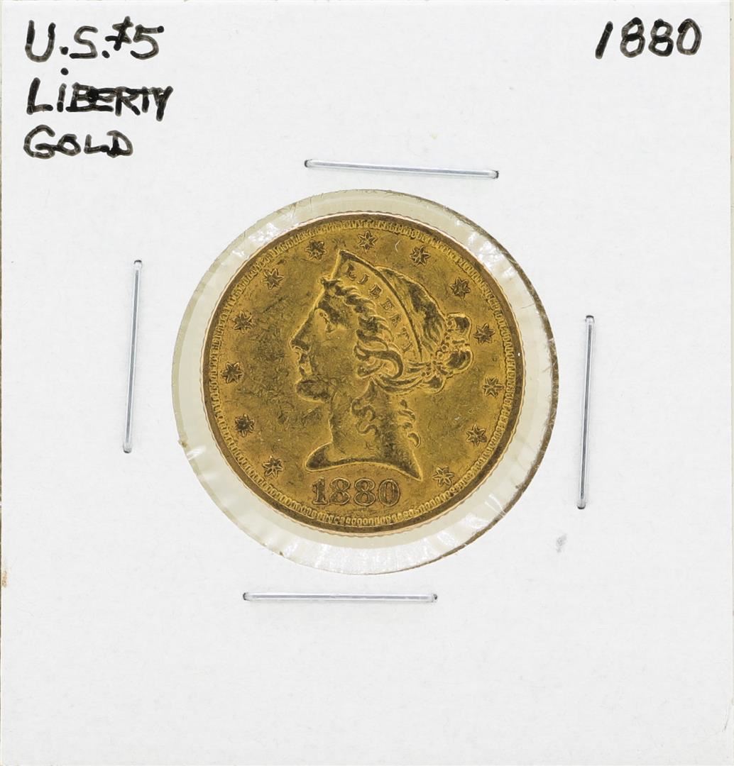 One 1880 $5 Liberty Head Half Eagle Gold Coin.