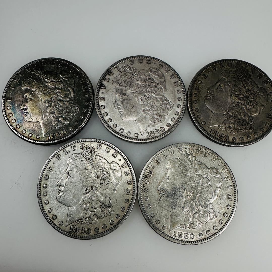 1880 Morgan Silver Dollar (VG+) Set of 5