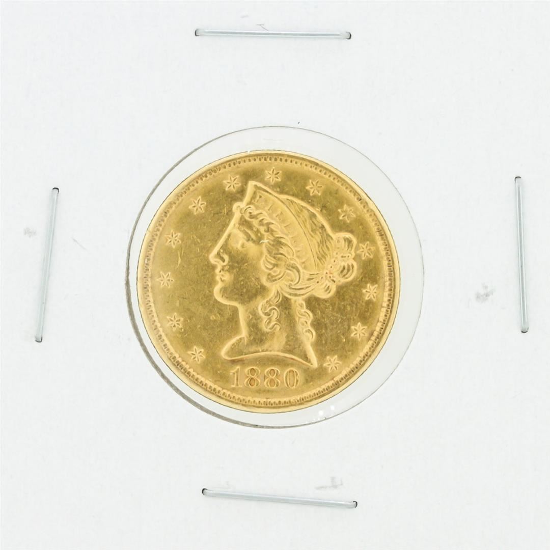 One 1880-S $5 Liberty Head Half Eagle Coin.