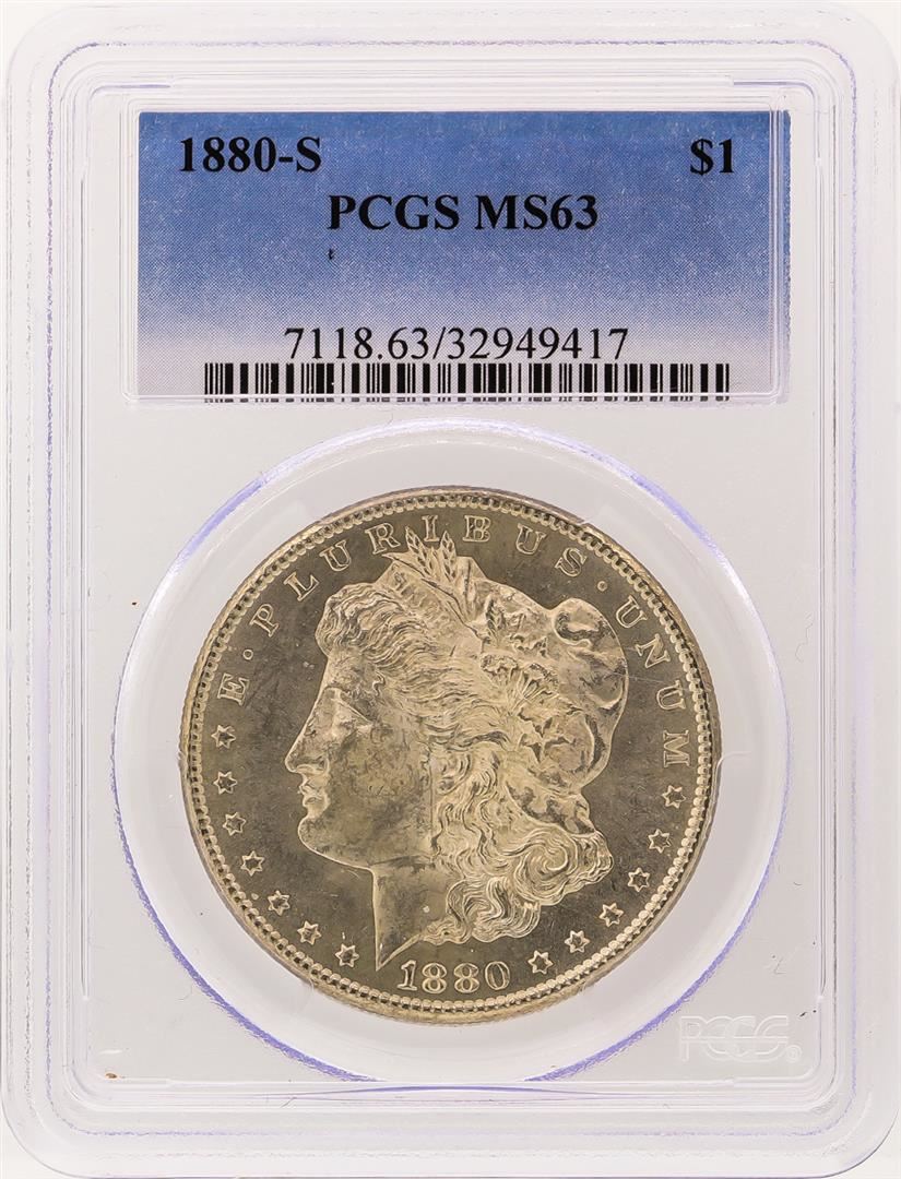 One 1880-S PCGS MS63 Morgan Silver Dollar. PCGS Certified.