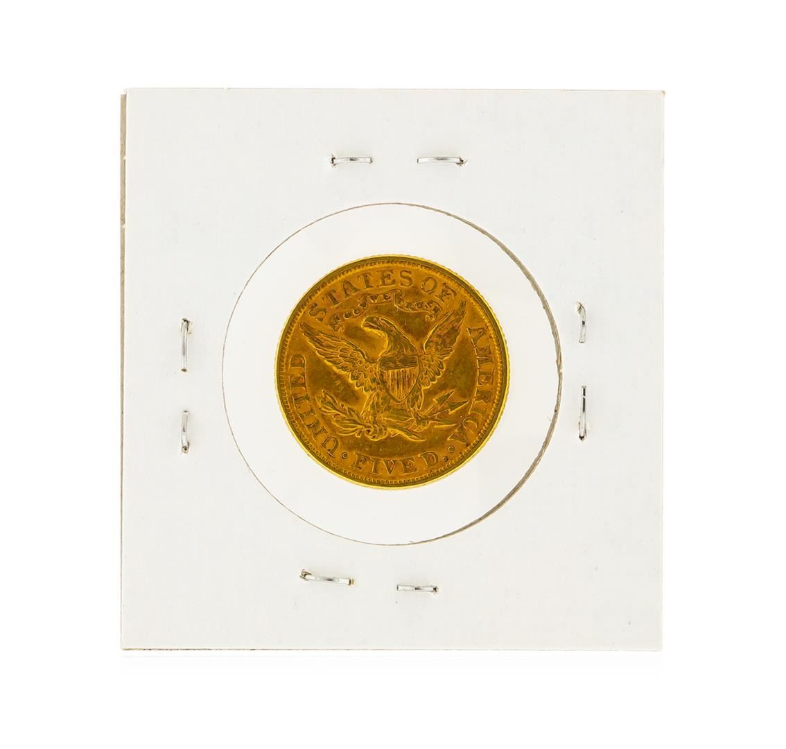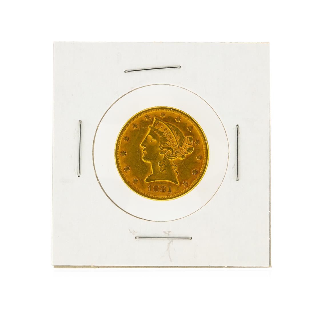 One 1881 $5 AU Liberty Head Half Eagle Gold Coin.