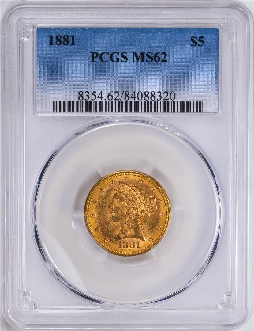 One 1881 $5 Liberty Head Half Eagle Gold Coin PCGS MS62.