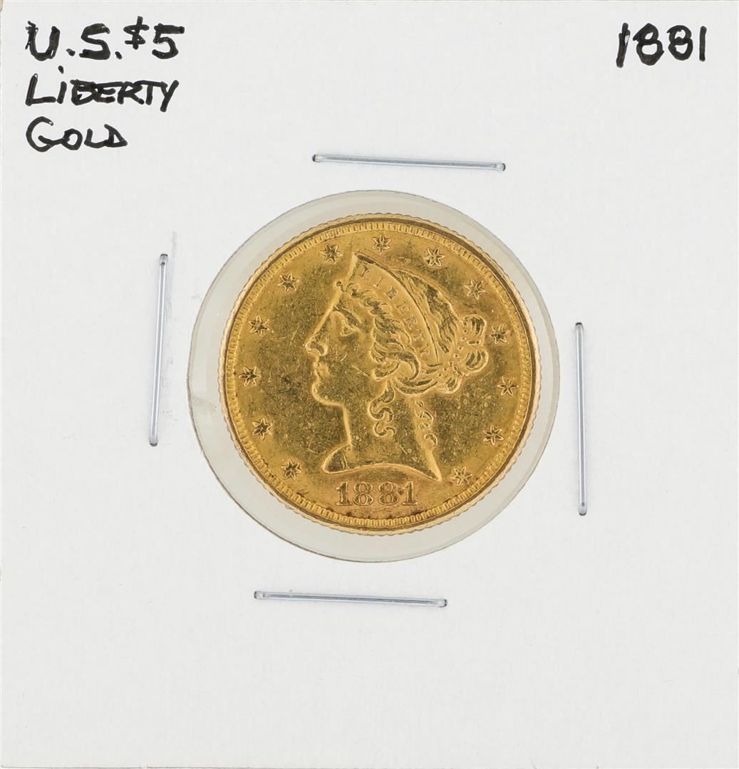 One 1881 $5 Liberty Head Half Eagle Gold Coin.