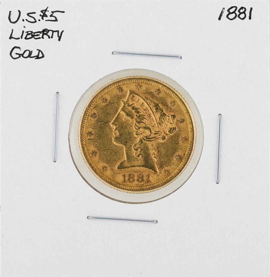 One 1881 $5 Liberty Head Half Eagle Gold Coin.