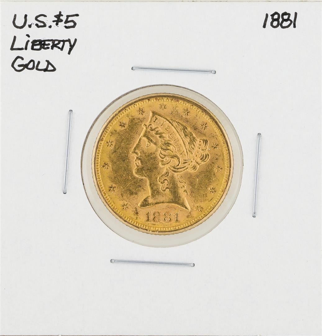 One 1881 $5 Liberty Head Half Eagle Gold Coin.