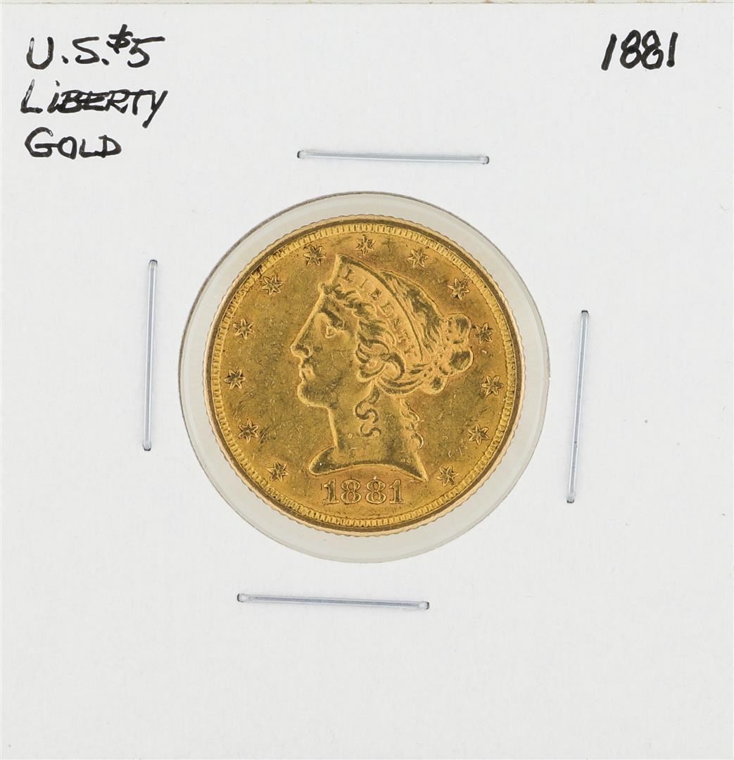 One 1881 $5 Liberty Head Half Eagle Gold Coin.
