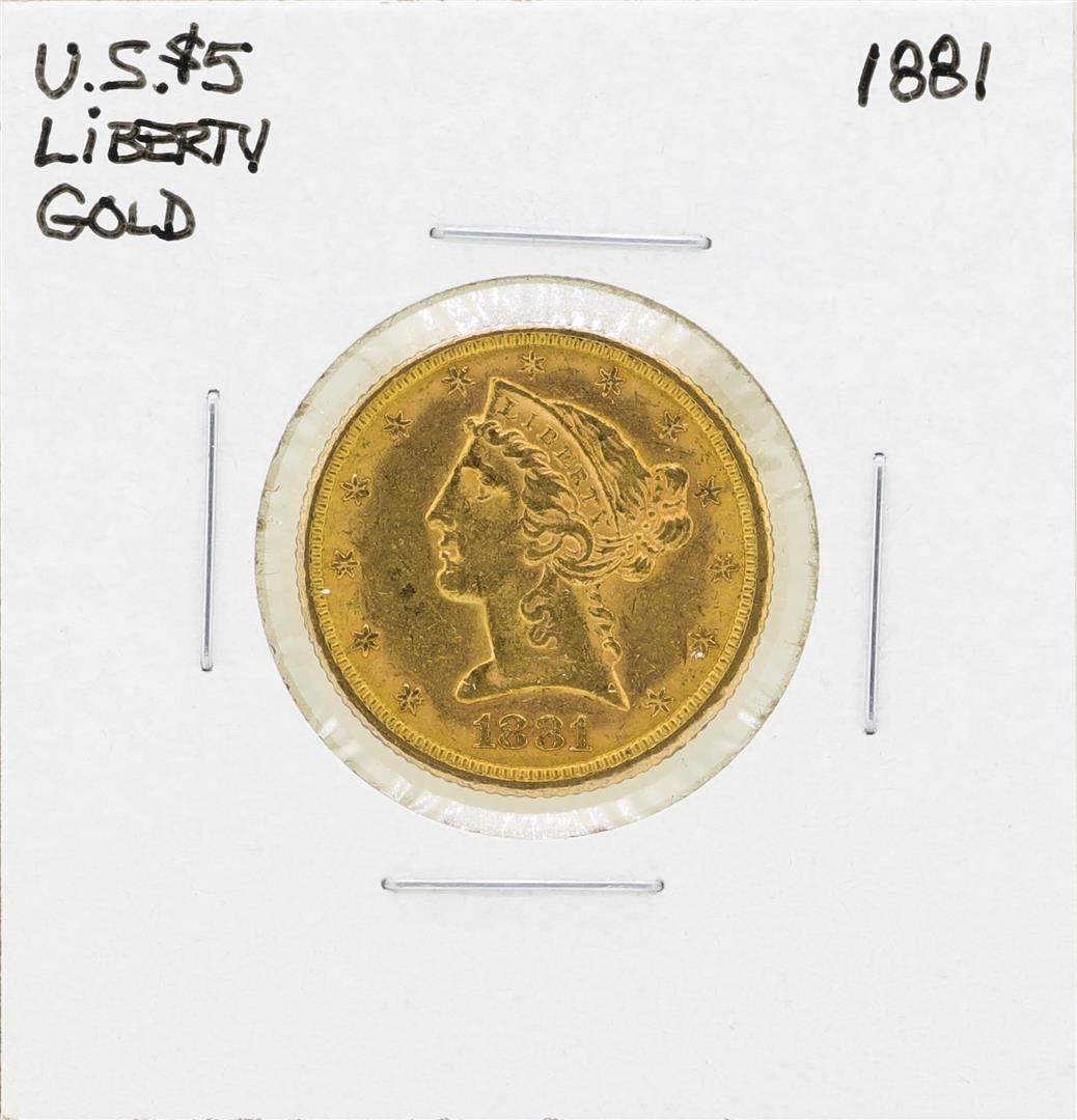 One 1881 $5 Liberty Head Half Eagle Gold Coin.