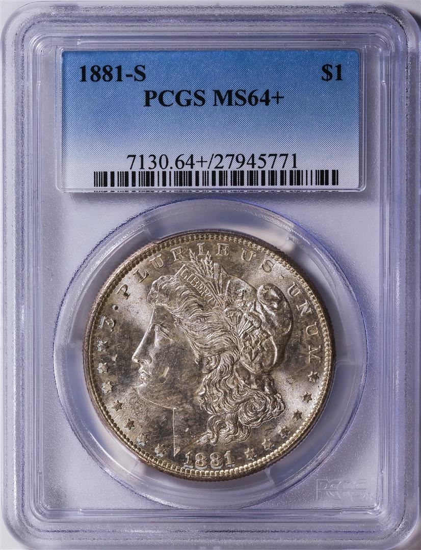 One 1881-S $1 American Silver Eagle Dollar Coin PCGS MS64+.