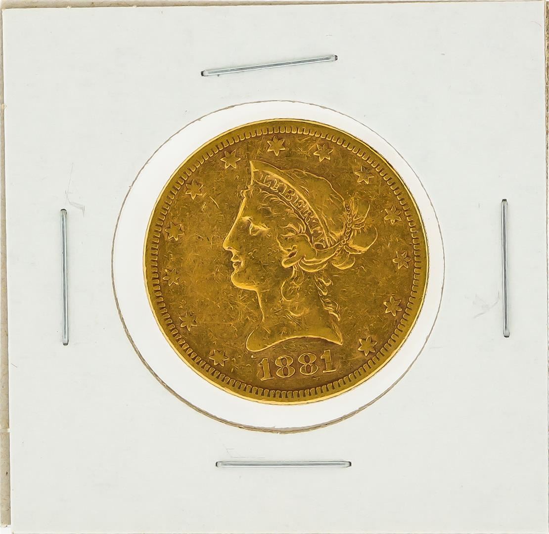 One 1881-S $10 VF Liberty Head Eagle Gold Coin.