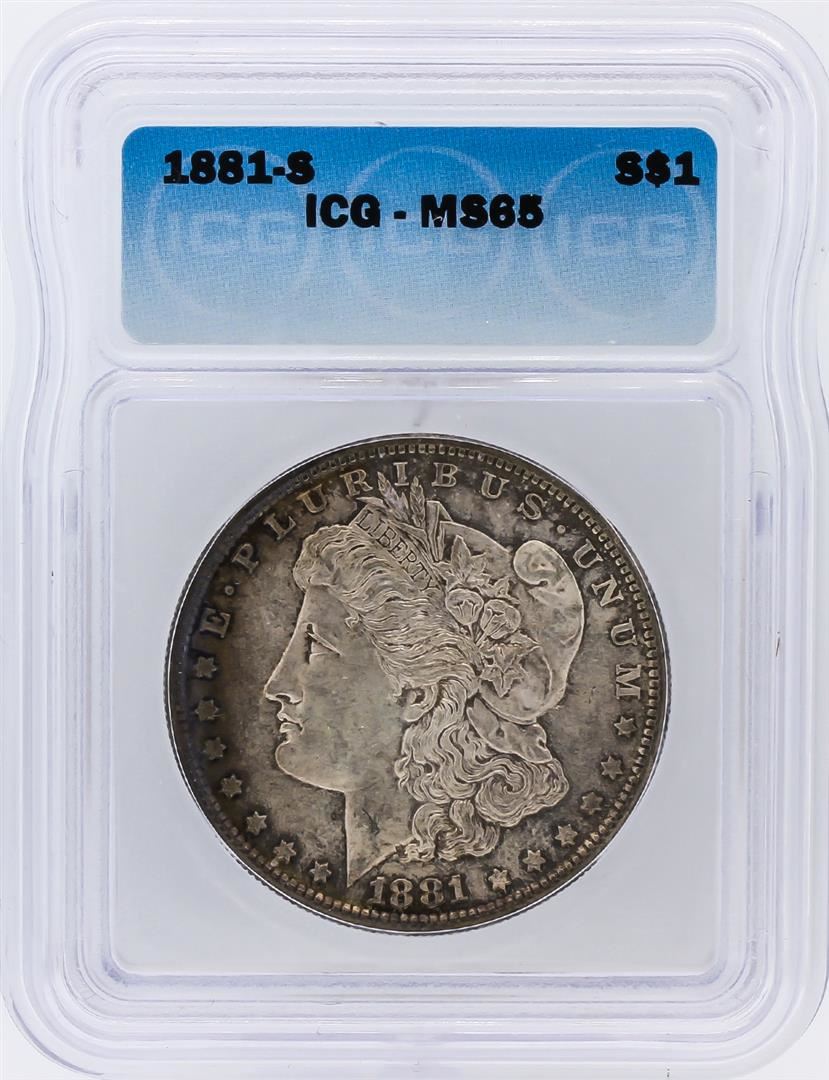 One 1881-S ICG MS65 Morgan Silver Dollar. ICG Appraised.