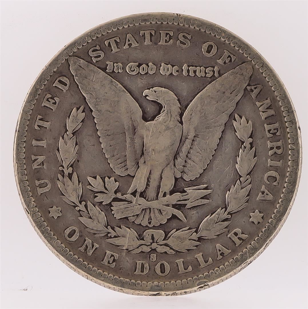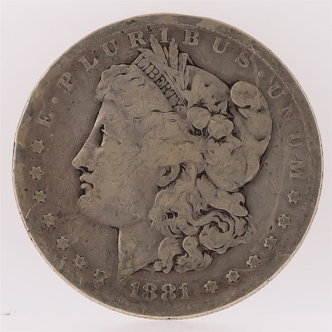 One 1881-S Morgan Silver Dollar.