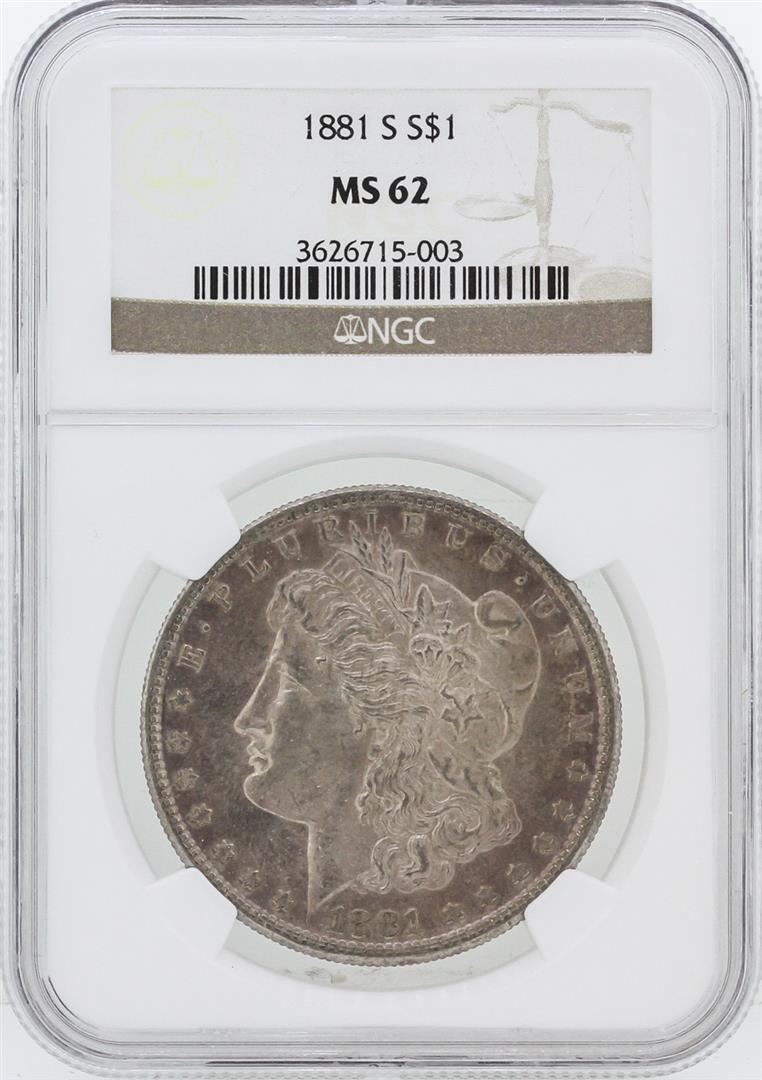 One 1881-S NGC MS62 Morgan Silver Dollar. NGC Certified.