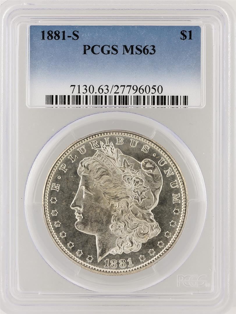 One 1881-S PCGS MS63 Morgan Silver Dollar. PCGS Certified.