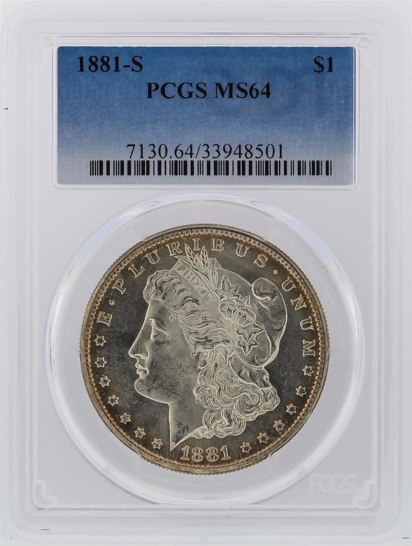 One 1881-S PCGS MS64 Morgan Silver Dollar. PCGS Certified.