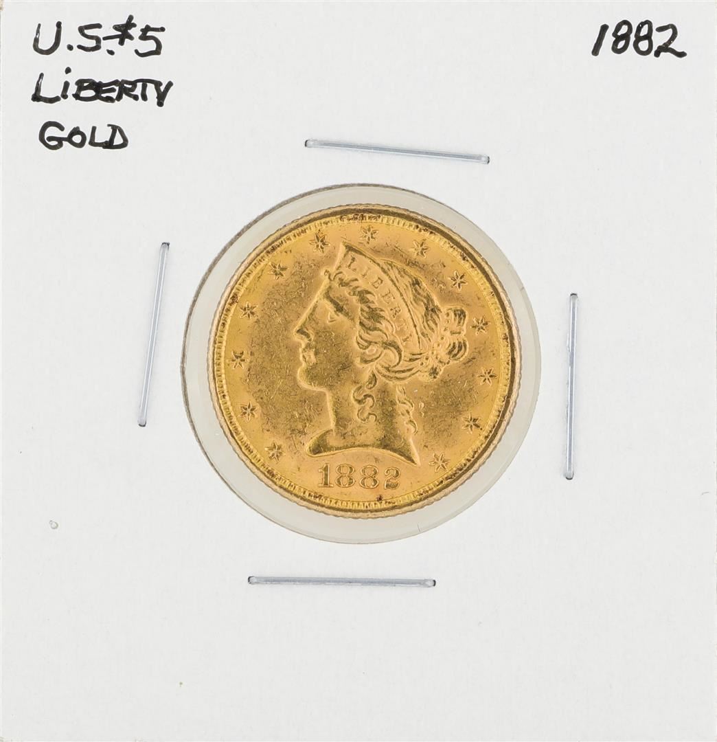 One 1882 $5 Liberty Head Half Eagle Gold Coin.