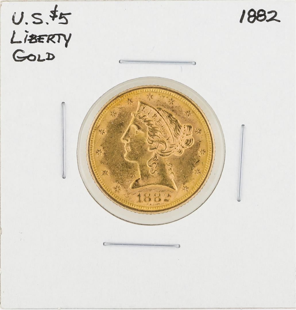 One 1882 $5 Liberty Head Half Eagle Gold Coin.