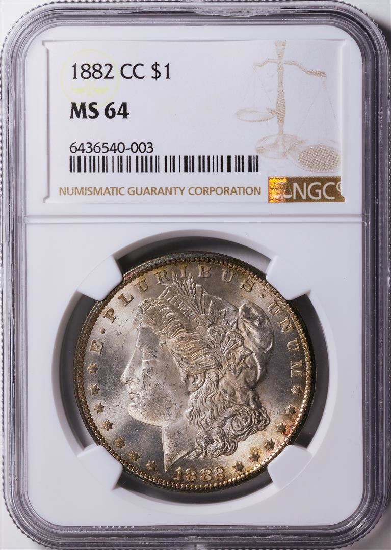 One 1882-CC $1 American Silver Eagle Dollar Coin NGC MS64.